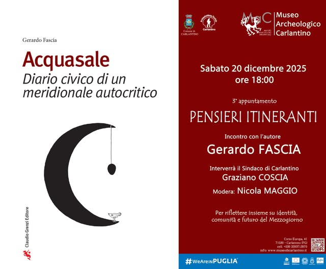 Il MaC ospita Gerardo Fascia per la presentazione del suo volume "Acquasale - Diario civico di un meridionale autocritico", un racconto che profuma di radici, che intreccia memorie, territorio e identità.